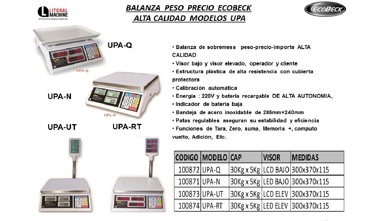 CODIGO: 100871 BZA.ECOBECK HQ MOD.UPA-N 30 LCD VISOR BAJO